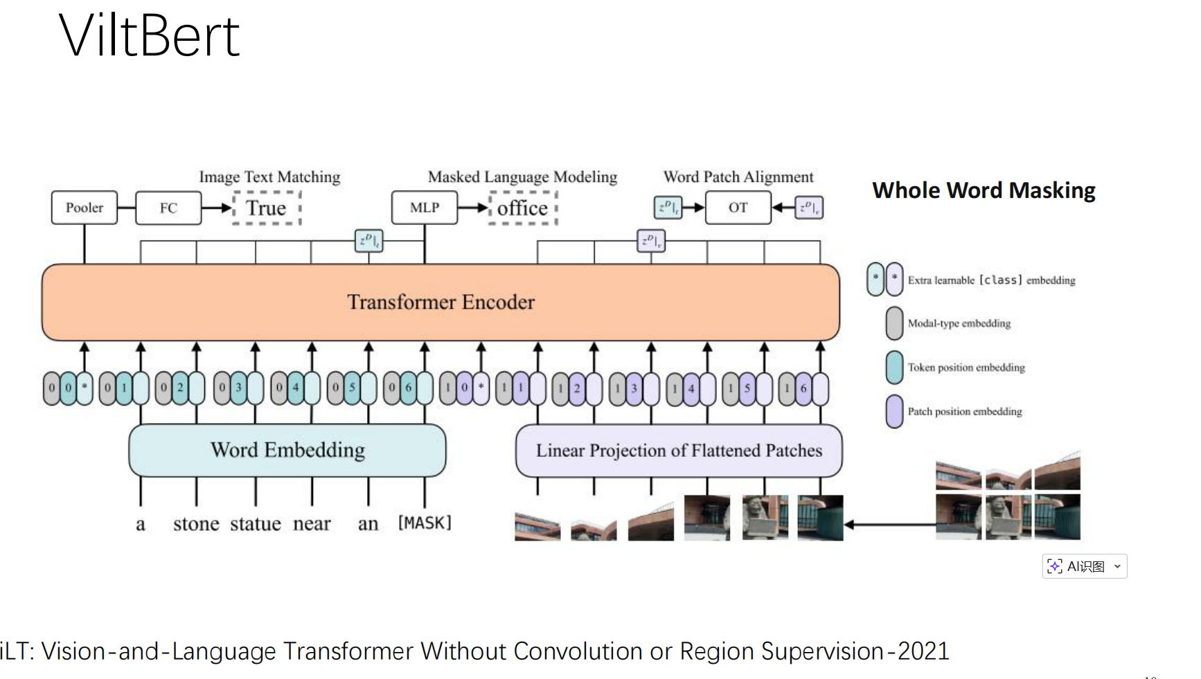 🔹 阶段二:ViLT (Vision-and-Language Transformer Without Convolution)