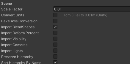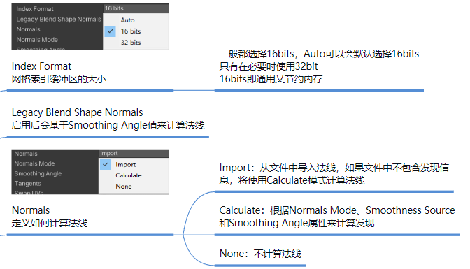- Use External Materials(Lagacy):将导入的材质提取为外部资源(比较古老的项目才会使用这个选项)