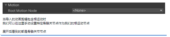 Root Transform Rotation 决定:动画中的旋转是否应用到角色身上。