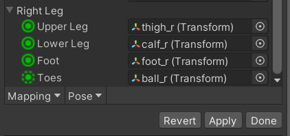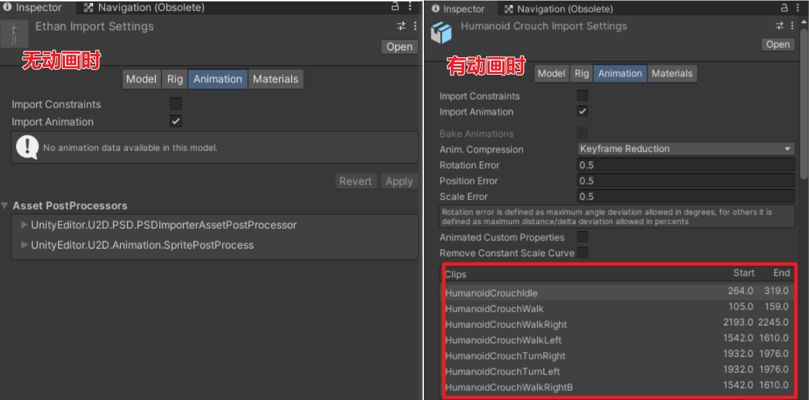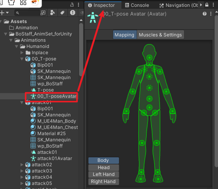 | 结果 | 模型无法播放 Humanoid 动画,相当于没有骨骼映射 |