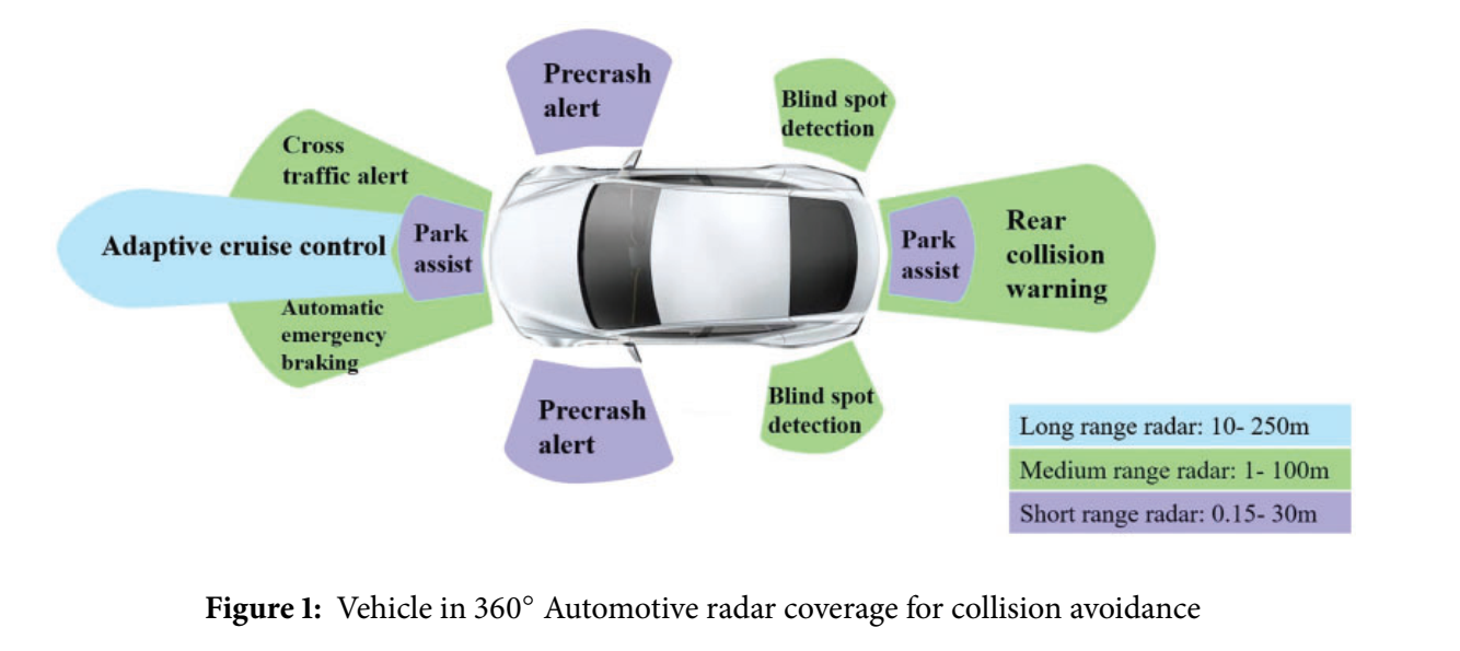 Fig. 1:360° 环视雷达覆盖与 ADAS 功能对应关系