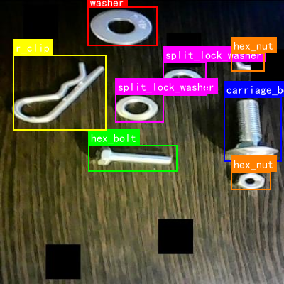 小零件检测优化:对于弹性卡环和平垫片等小零件,检测精度仍有提升空间,可以引入注意力机制和特征金字塔网络,增强对小目标的特征提取能力。