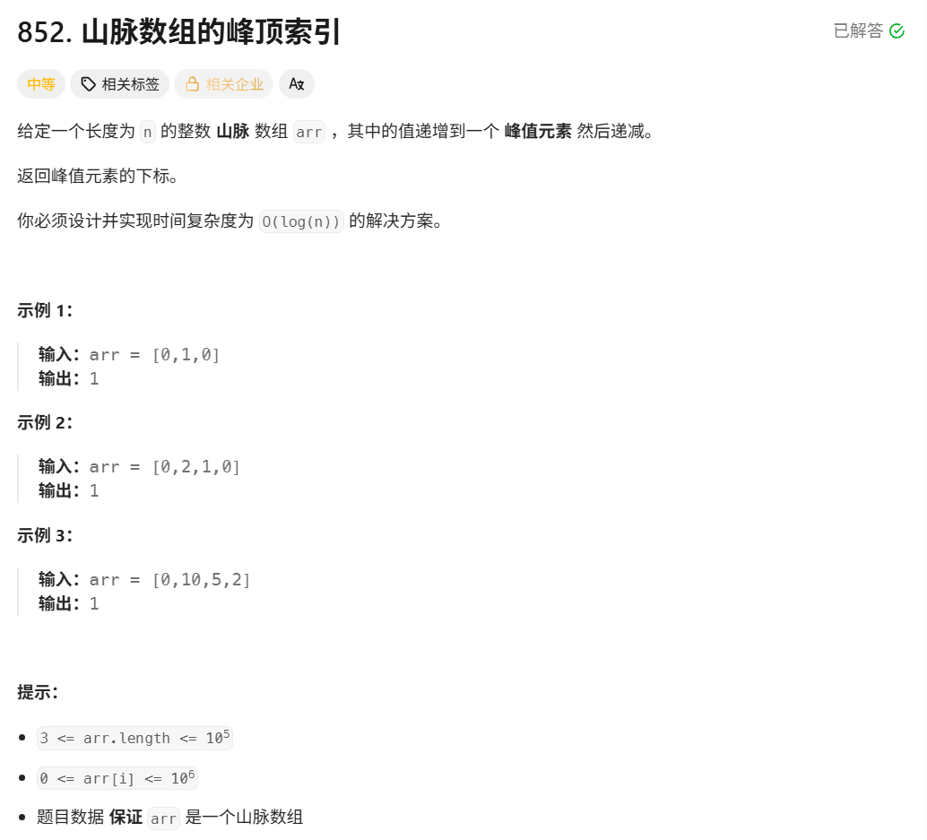 5.山脉数组的峰顶索引
