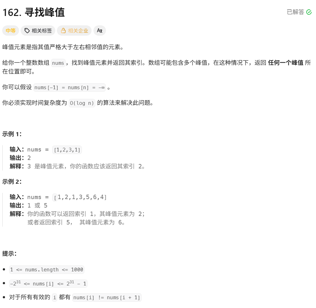 int findPeakElement(vector<int>& nums)