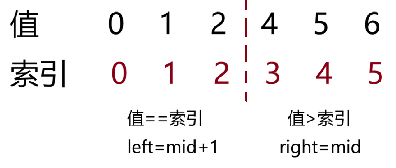 另外left+(right-left)/2也等价于left+(right-left+1)/2,这两种写法在数组元素个数为奇数时没有区别,而在数组元素个数为偶数时只是取右边的中点还是左边的中点的区别