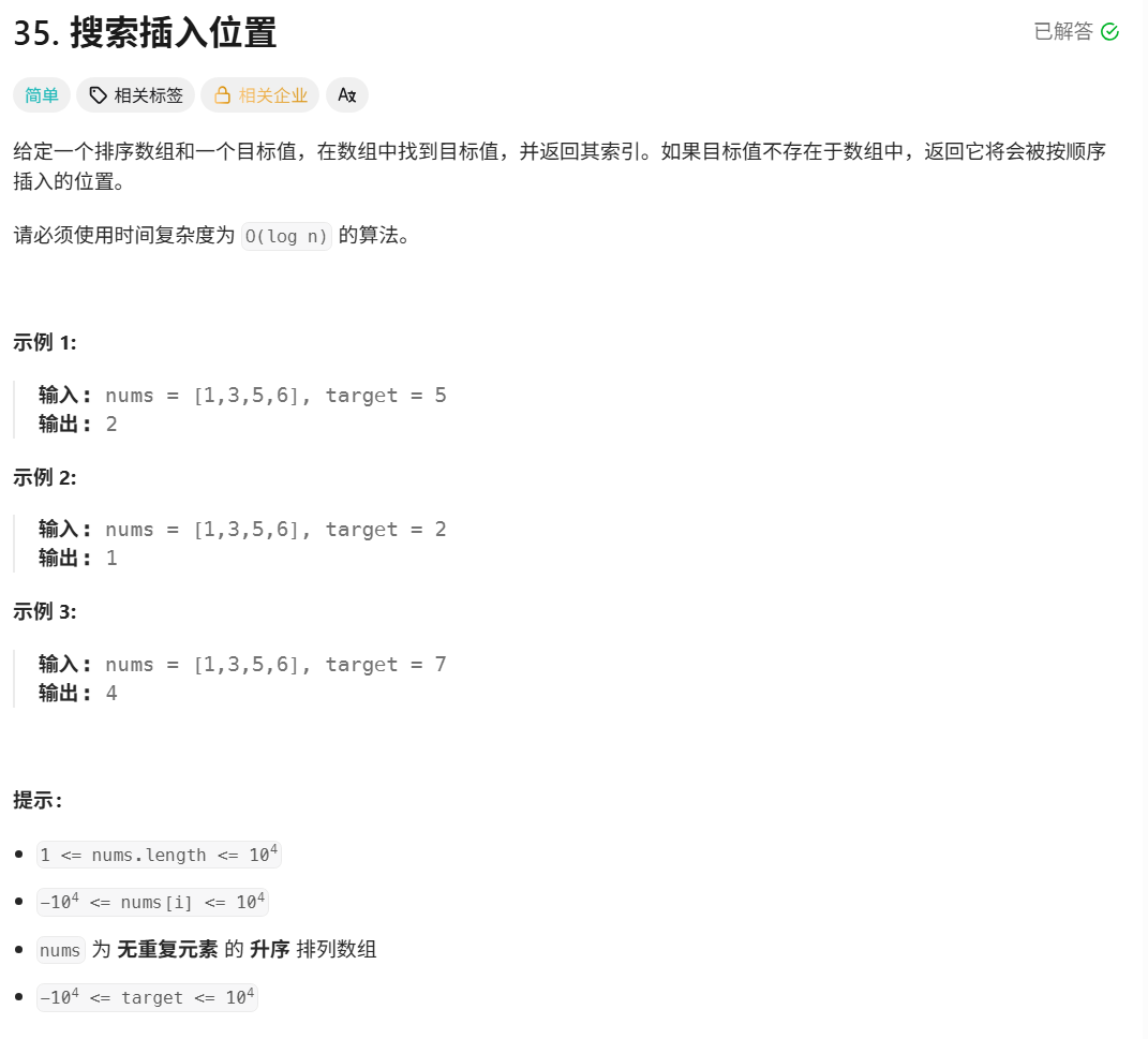 3.搜索插入位置