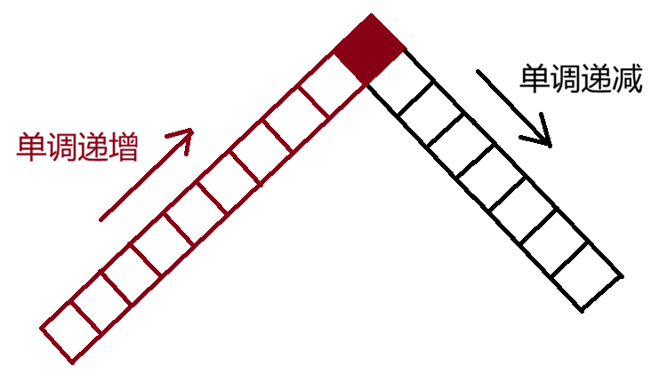 如果以A为分界依据,一旦数组严格升序排列就会找到最大值,需要最后判断一下。