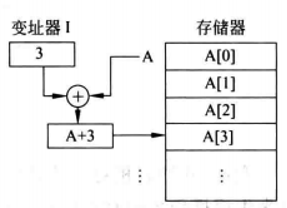 操作数的有效地址EA=(I)+A,其中(I)表示变址寄存器I中的内容,A一般是指令给出的。变址寄存器是面向用户的,在程序执行过程中,变址寄存器的内容可由用户改变(作为偏移(量),形式地址A不变(作为基地址) 。例下图: