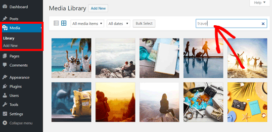 打开"媒体库",在左侧菜单栏中点击"媒体">"库",即可查看所有上传的媒体文件。