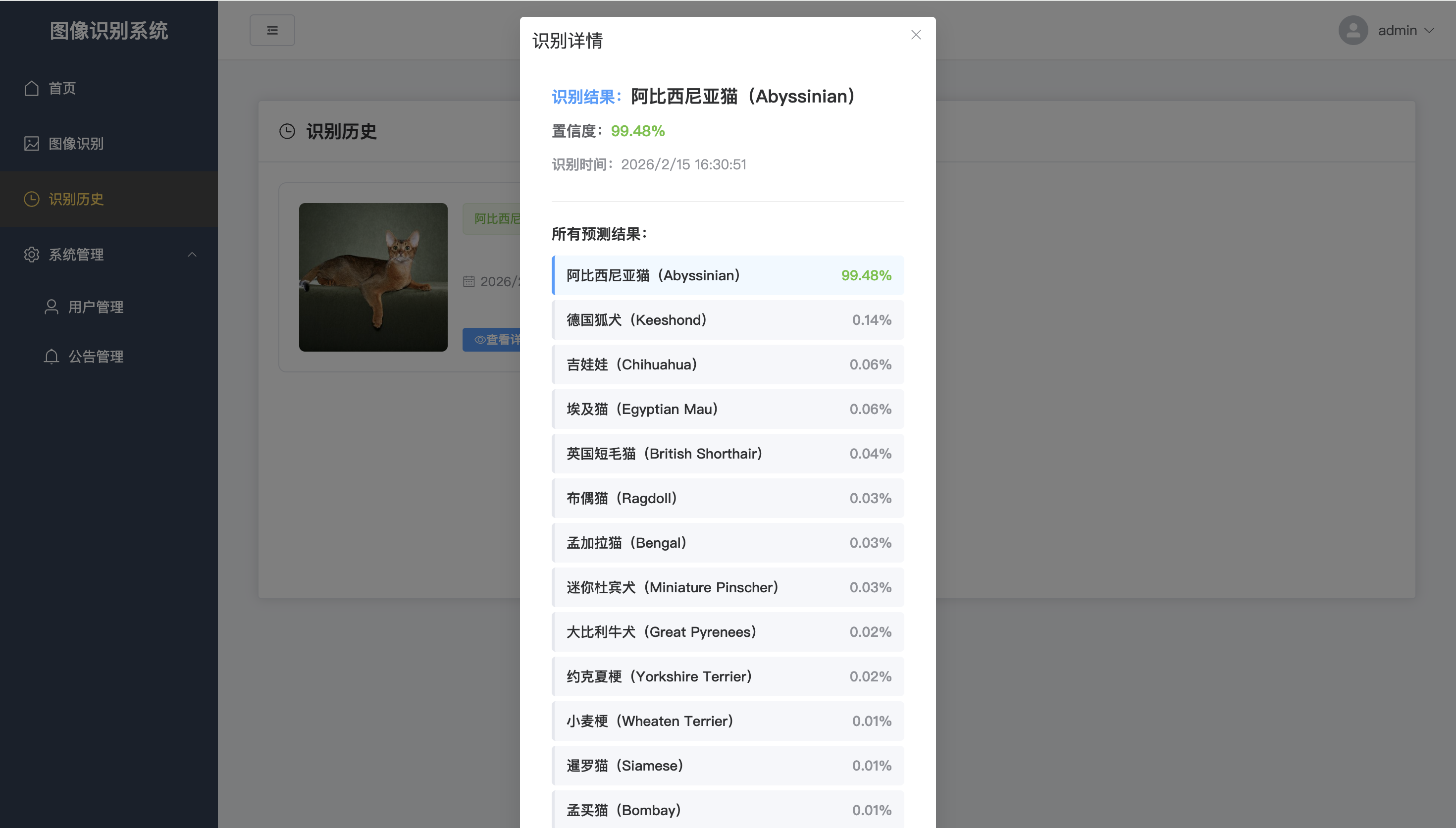本项目是一个基于深度学习的宠物识别系统,旨在实现对猫和狗的自动识别与分类。系统采用前后端分离架构,前端使用Vue3+Element Plus构建用户友好的交互界面,后端基于Flask框架提供高效的API服务,核心识别算法采用TensorFlow深度学习框架和ResNet50卷积神经网络模型。