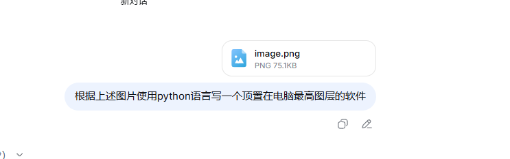 提示词:根据上述图片使用python语言写一个顶置在电脑最高图层的软件。
