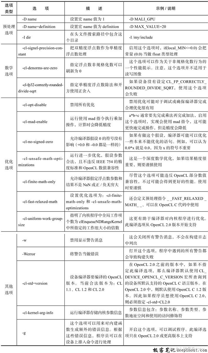 需要关注的主要就是 option 编译参数字串,通常这个参数设置跟 GCC 的编译选项非常类似,当然也有些 CL 语言本身的一些编译参数
