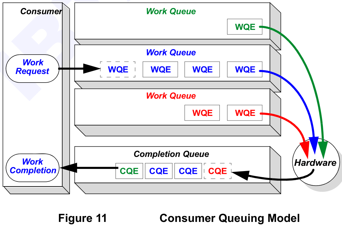- 消费者将WQE提交到QP,通道适配器则对每个WQE进行解析以执行相应操作。