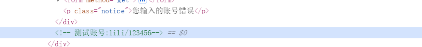 检查网页源码,发现以一个测试账号,这可能就是开发人员的疏忽造成的