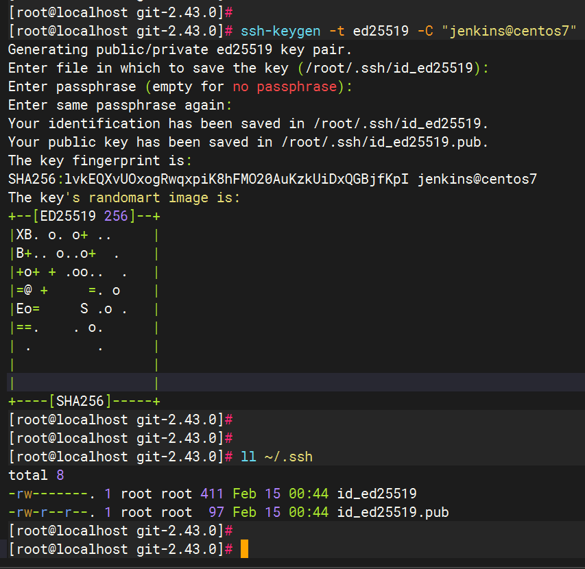 ssh-keygen -t ed25519 -C "jenkins@centos7"