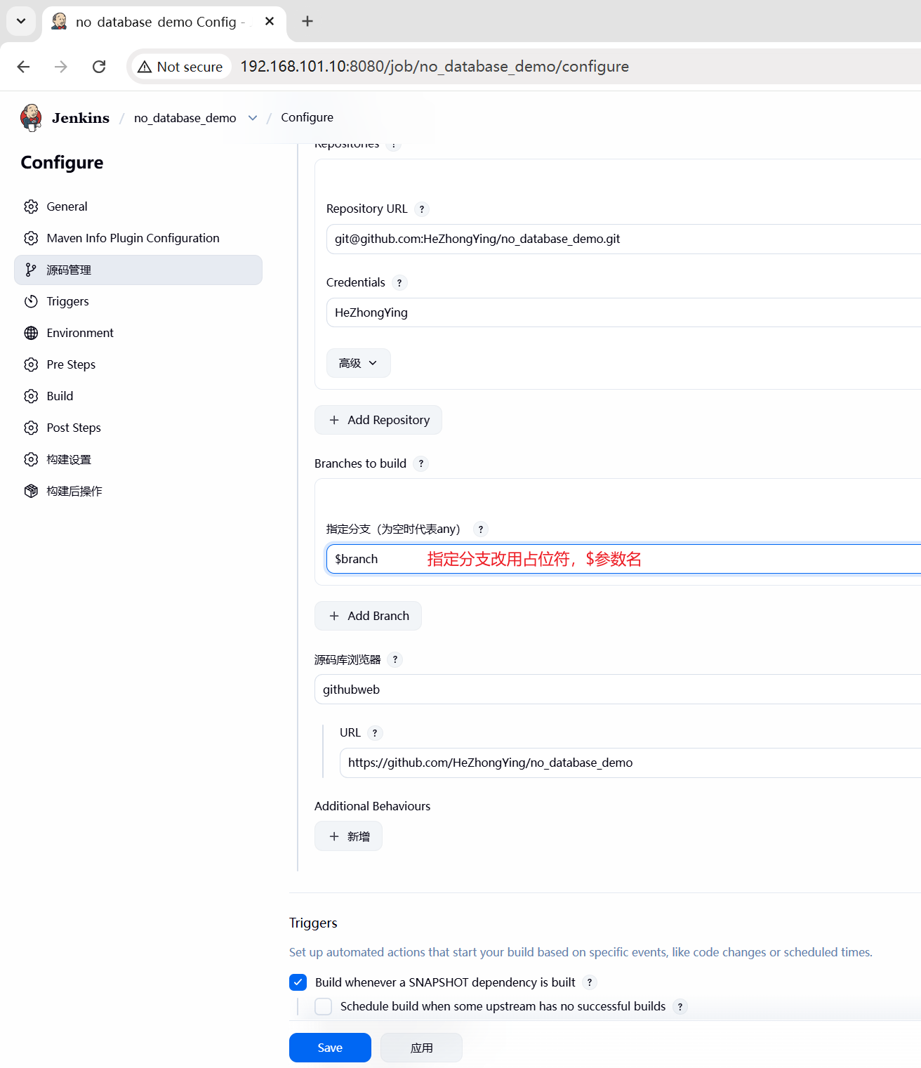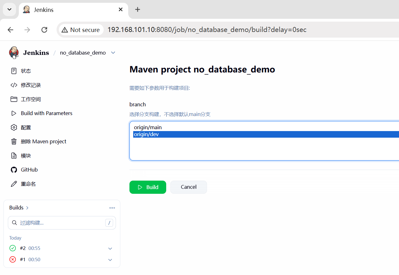 第二步,构建时,分支名使用占位符,来自用户选择。