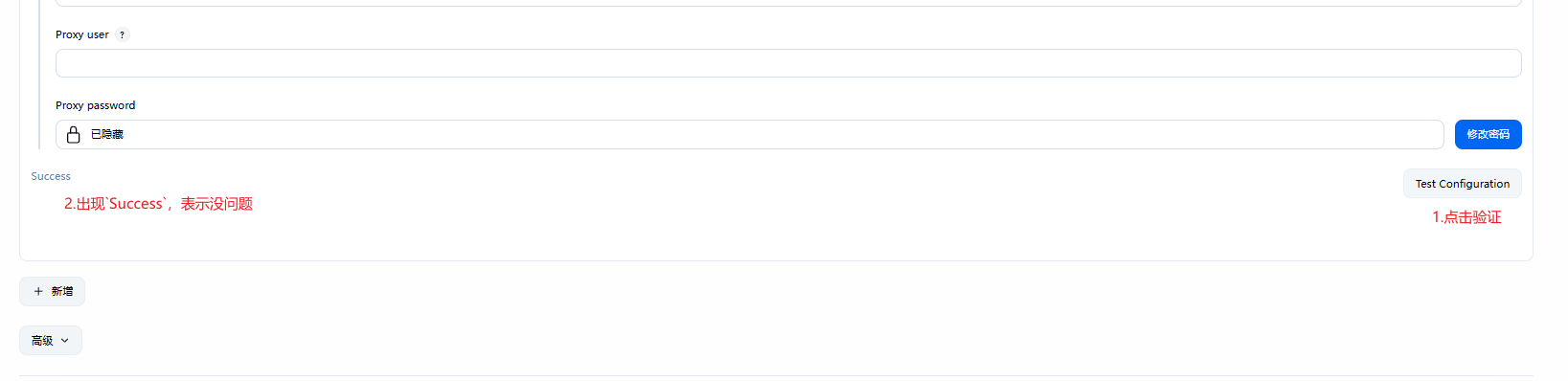 设置完,点下面的 Test Configuration 验证下。
