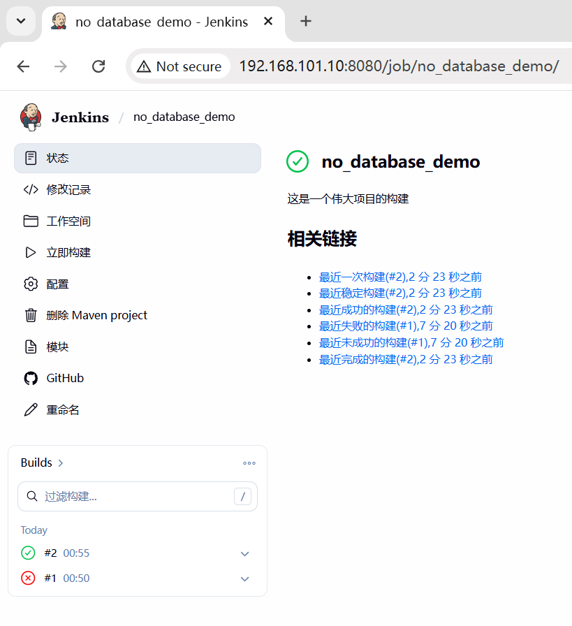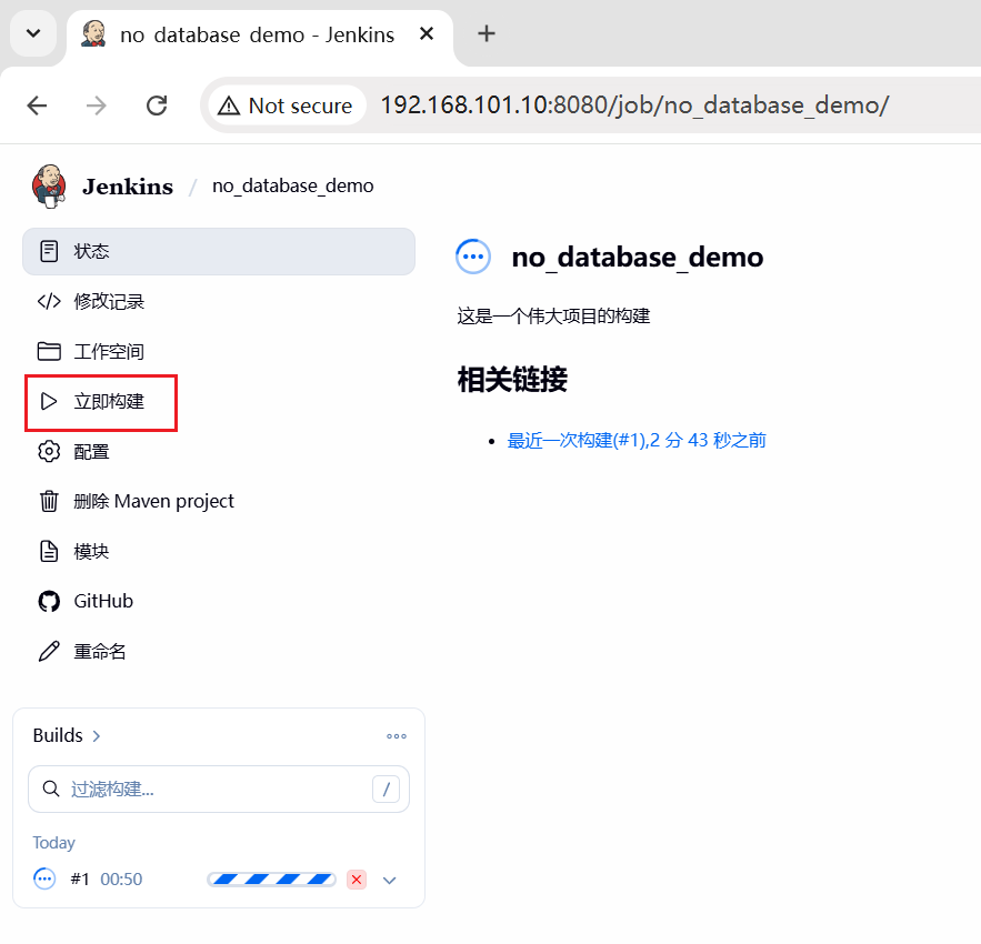 全部设置完,点保存,点 立即构建 验证下。