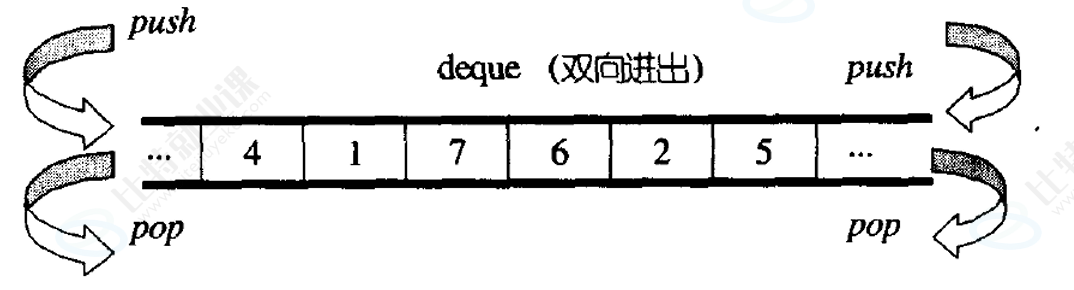如下,deque可以支持双向进出,所以称之为双端队列。