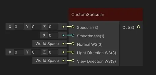 该节点的设计理念是提供灵活而强大的高光计算工具,使开发者能够突破标准光照模型的限制,实现各种特殊的高光效果。无论是模拟金属表面的强烈反射,还是表现非金属材质的微妙光泽,CustomSpecular 节点都能提供必要的计算支持。