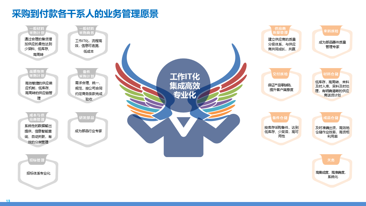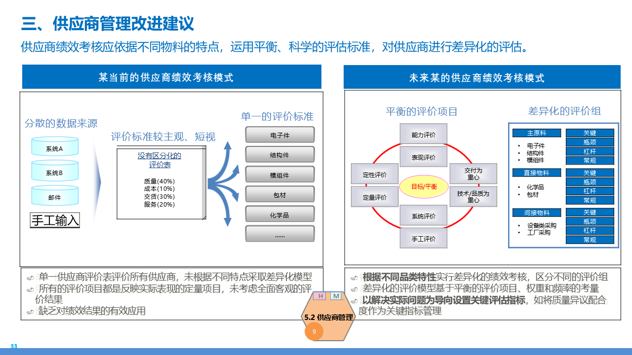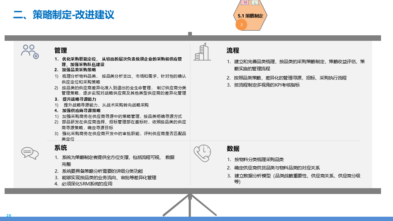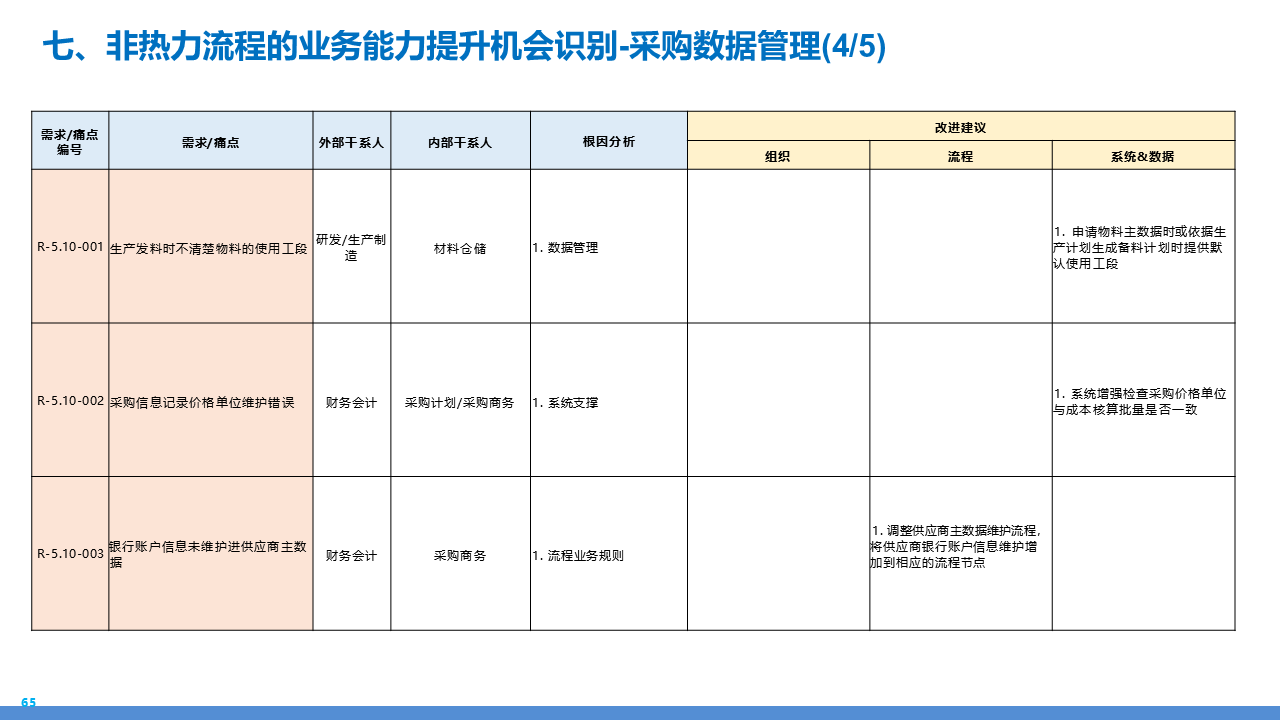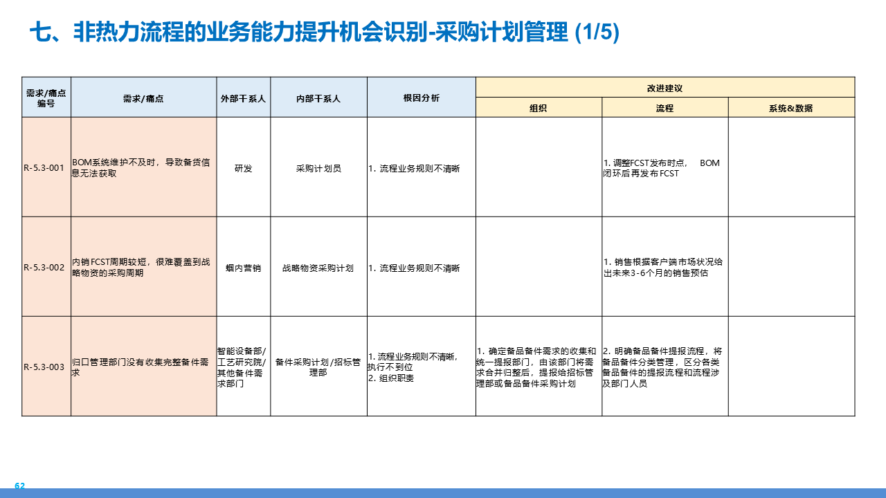适应人群为企业采购管理人员、供应链负责人、数字化转型决策者、招投标专员及库存与质量管理从业者。主要内容围绕 IBM 企业数字化转型中的采购供应链业务流程展开,核心包括战略规划(从传统采购到集成采购再到智慧采购的演进路径,以 "低成本、高齐套" 为目标);业务流程体系(涵盖策略制定、供应商管理、招投标、采购执行、库存管理、质量管理等模块,含 11 个二级流程和 81 个三级流程);痛点与改进(分析供应商管理、库存管控、质量追溯等环节的痛点,提出差异化寻源、供应商全生命周期管理、批次追踪、系统集成等解决方案);实施保障(通过组织架构优化、流程标准化、SRM/ERP 系统应用、数据驱动决策等支撑转型),为企业实现采购供应链的高效化、智能化、协同化提供全面指引。
