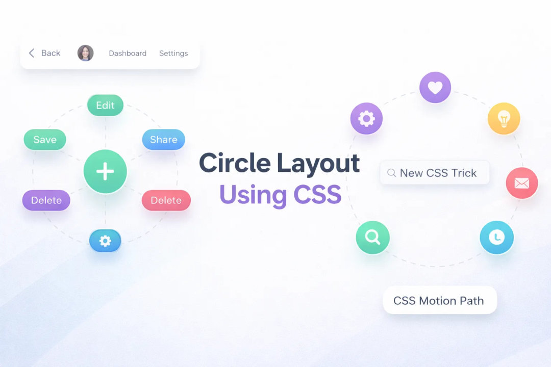 在这个方案里,一种名为 CSS Motion Path(运动路径) 的新锐技术被引入了进来。我们不再去死磕什么恶心的角度计算,而是像霸道总裁一样直接命令浏览器:"看到这个圆了吗?把这些亲兄弟给我均匀地摆上去!"