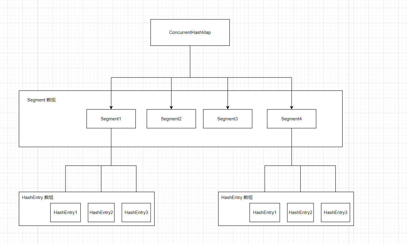 这里的HashEntry就是一个一个的槽,每个槽存的就是一条链表(因为哈希冲突使用拉链法),然后引进了Segment的概念,就是规定哪几个元素或是那一段元素属于哪一个Segment,就这样一个数组分成好几段,每一段都用一个Segment进行管理,然后每次锁的时候就是锁一个Segment,也就是锁一小段