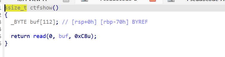 buf距离rbp的偏移是0x70(112 字节)。- 覆盖返回地址长度 =