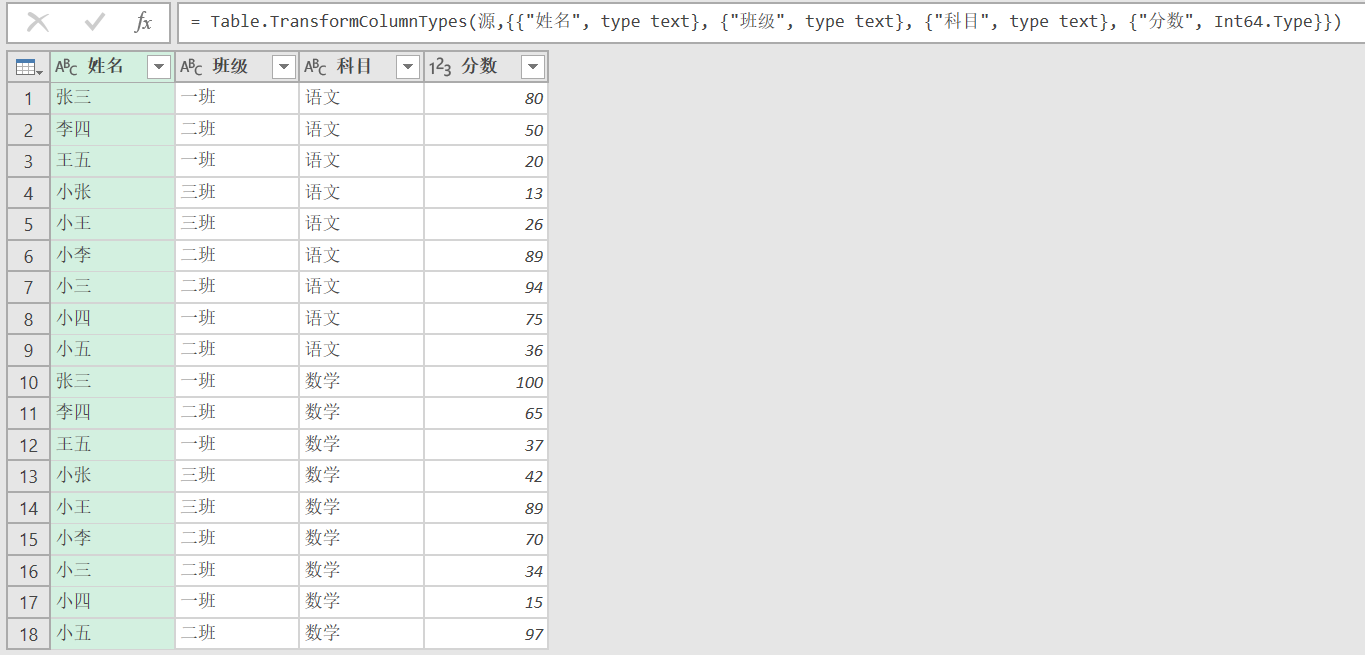 🔷统计每个班级的每个科目的平均分