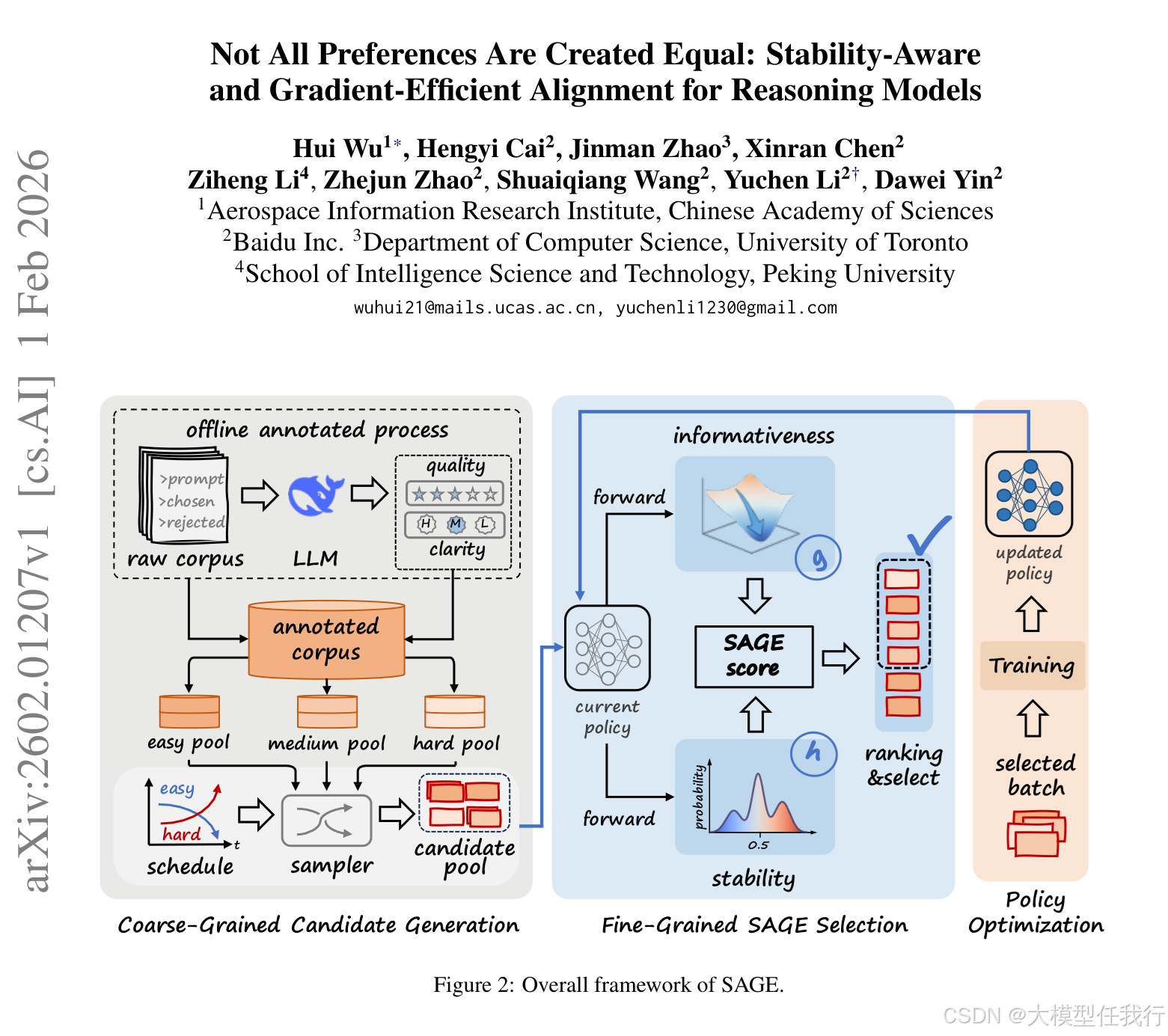 🔸主要贡献:论文提出SAGE框架,通过策略感知、稳定感知的动态偏好选择,显著提升对齐过程的收敛速度、稳定性和样本效率。