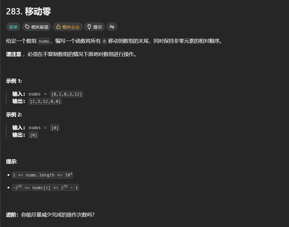 if (nums[right] != 0) {//left一直指向上一个交换后的0