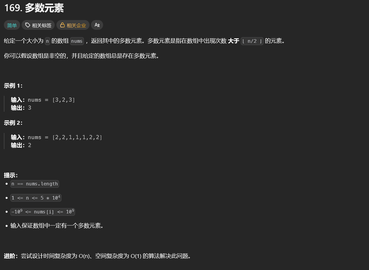 return ms;//由于多数元素出现大于n/2次,肯定count不会被减到0