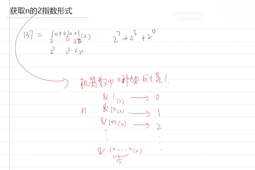 把数字转化成机器数,不难看出,获得任何一个数的2指数形式,只需要知道机器数中哪些比特是1,