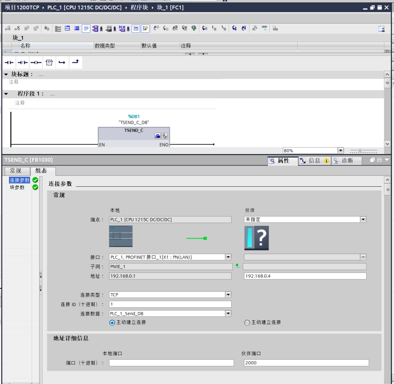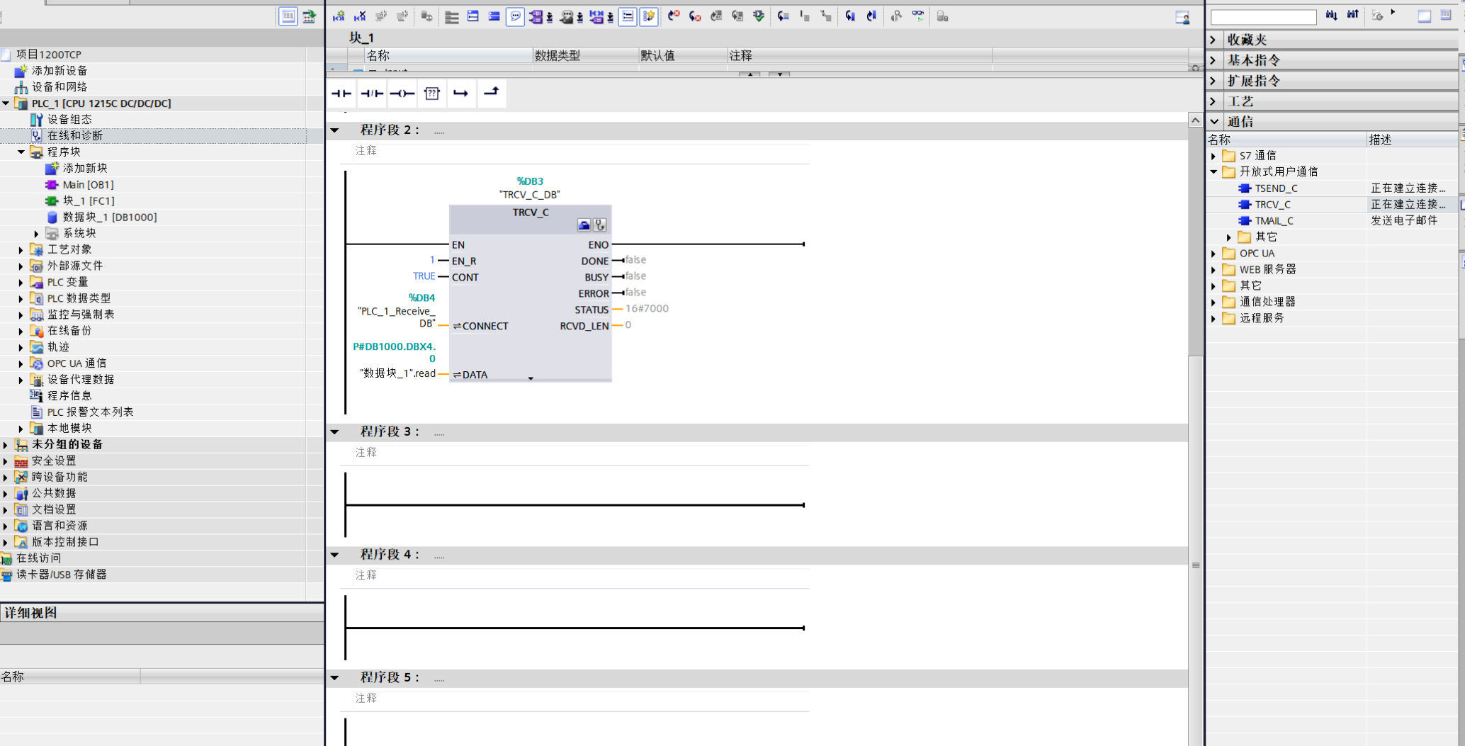 补充说明:PLC1200 V4.5及以上版本支持通过网络视图直接组态TCP连接,无需手动调用连接建立指令,大幅简化操作流程。