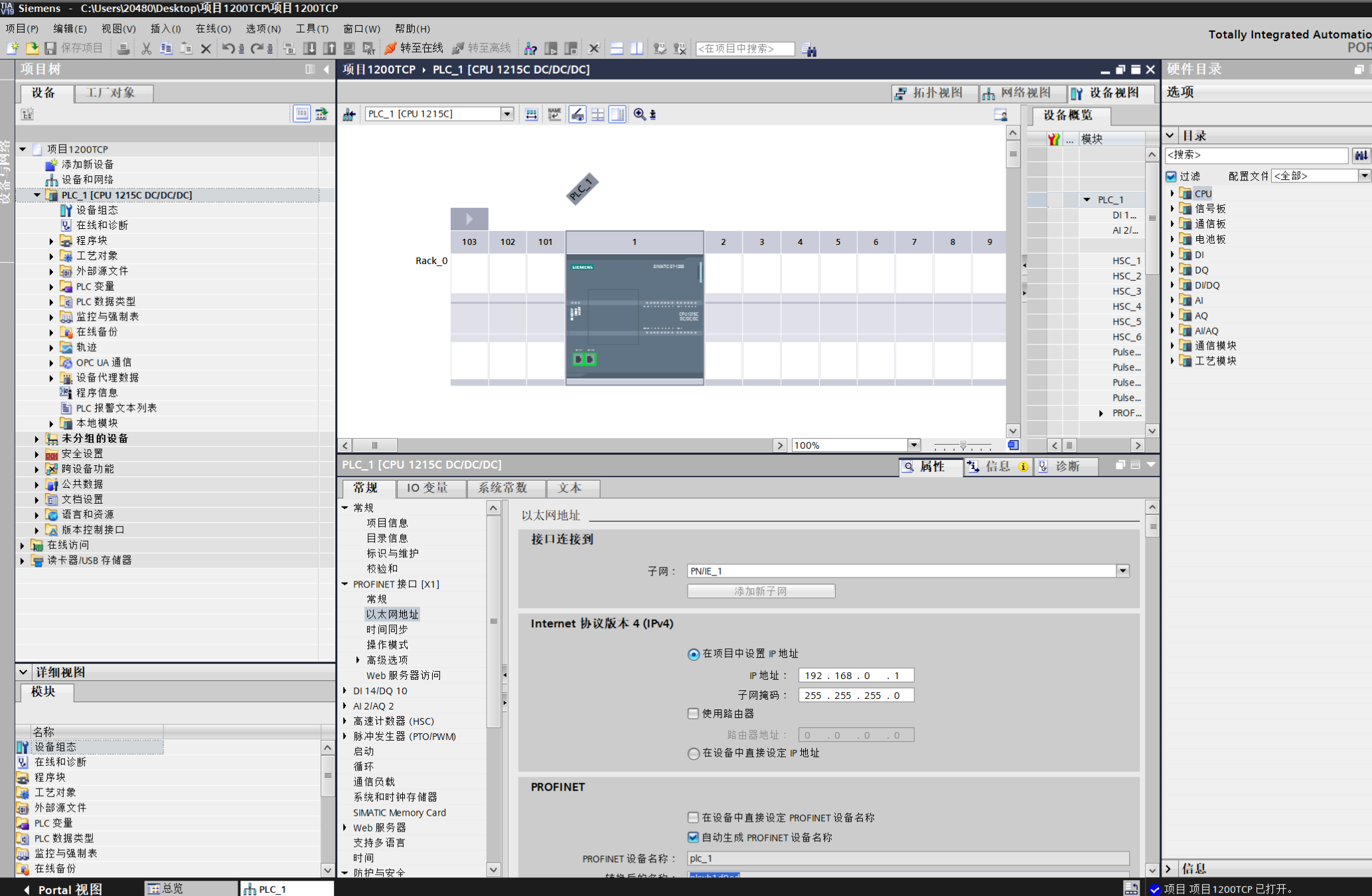 三、PLC1200 TCP/IP通信分步实操(以TIA Portal V19为例)