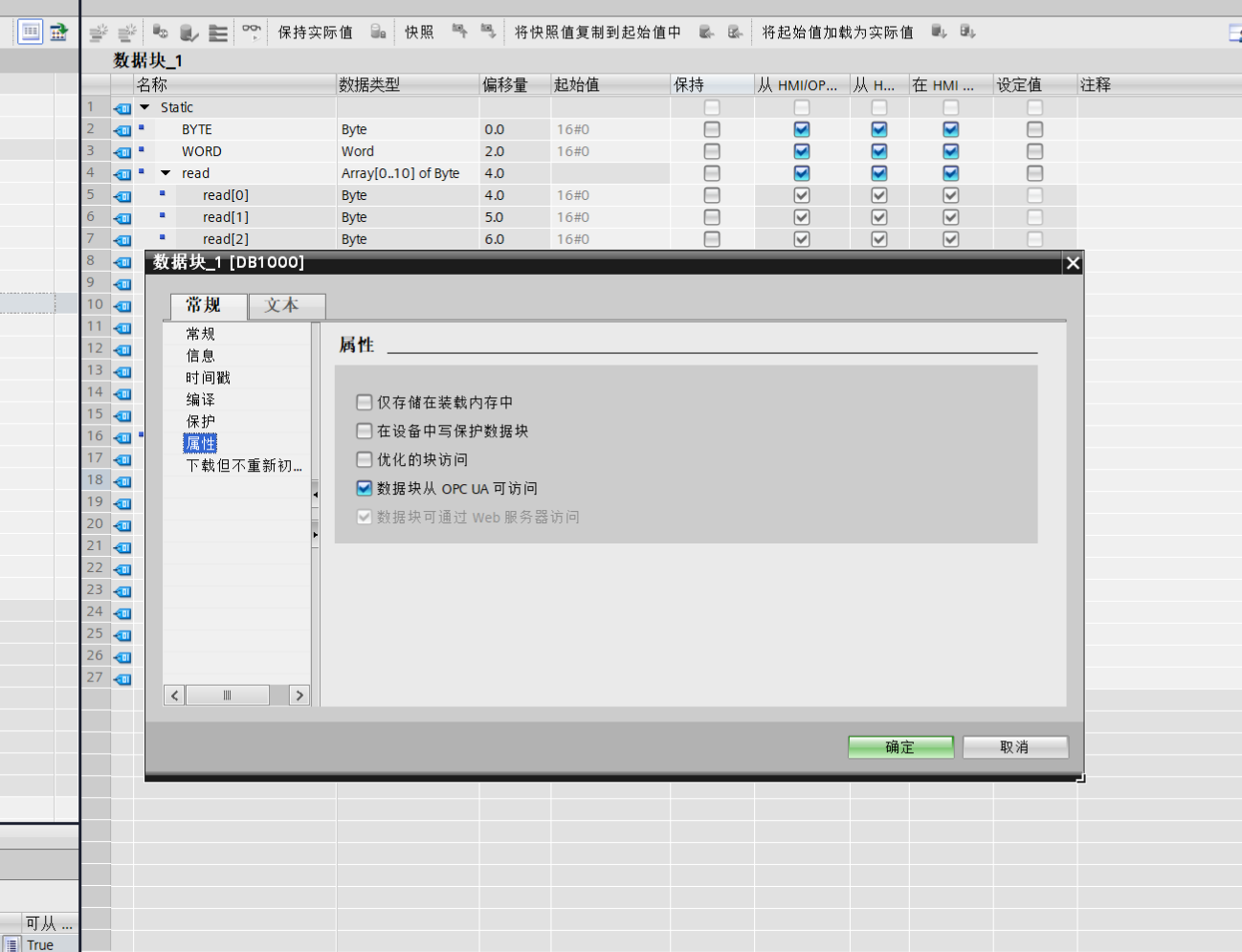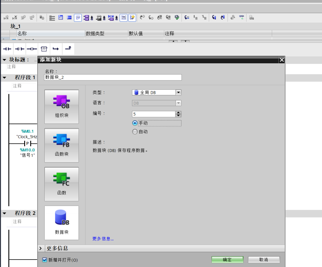设置完成之后,添加一个新的DB块,编号设置为1000