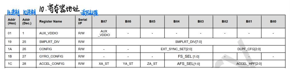 SMPLRT_DIV:采样频率分频器,8位为一个整体,作为分频值。