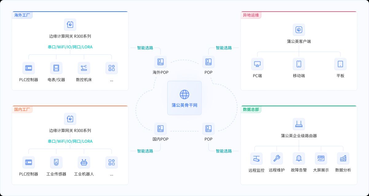 这一方案的精髓在于 "连接"与"简化":它既尊重了传统工业设备的通信现实,又高效地将其数据流引向了现代以太网乃至云端,从而打破了信息孤岛。无论是单厂区内的设备联网、远距离数据回传,还是跨地域的多点数据汇聚与统一管理,蒲公英都能以极低的部署与维护成本,帮助用户快速搭建起灵活、安全、易管理的工业通信网络