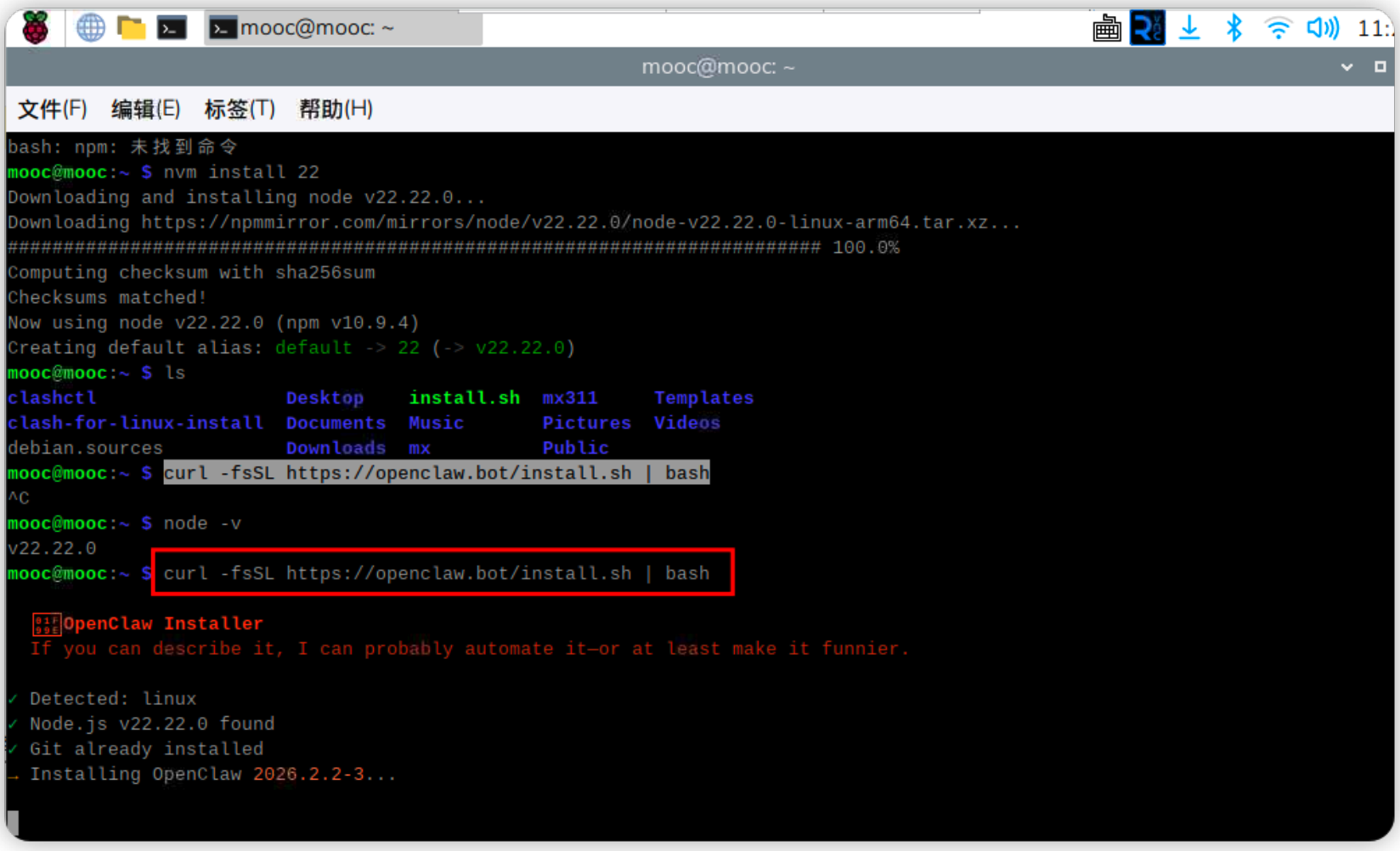 1️⃣终端输入命令,安装OPenClaw,下载稍慢,请耐心等待。