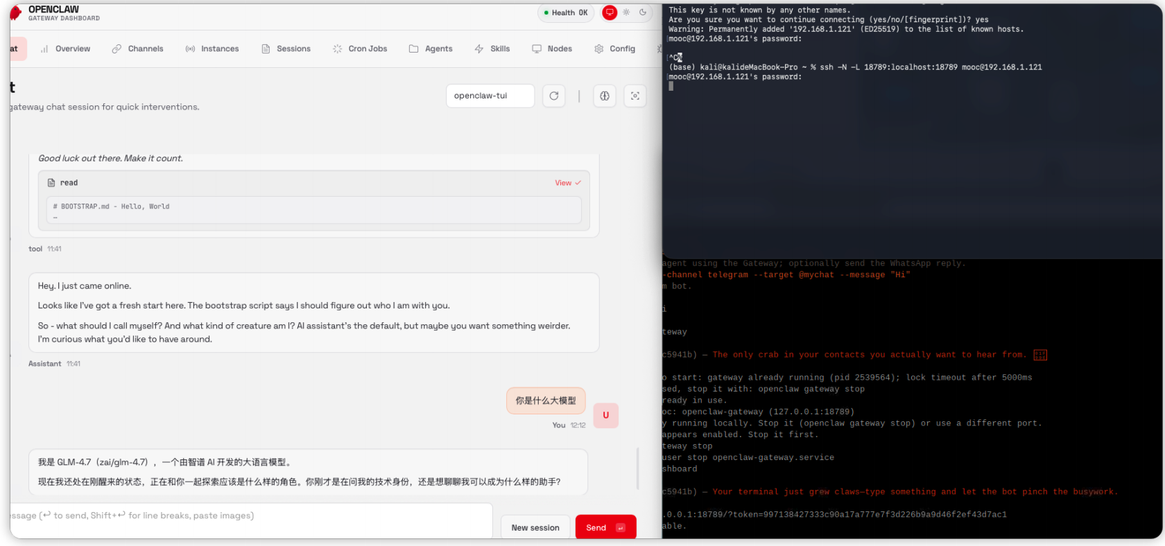 openclaw dashboard获取Dashboard URL,实现连接ssh的设备局域网访问。