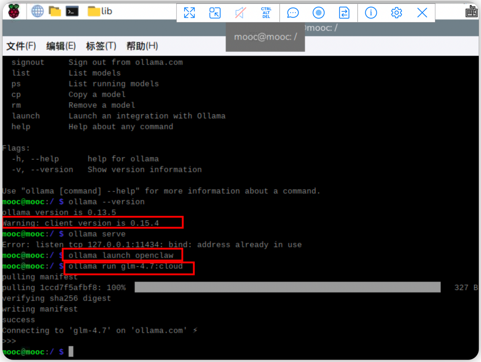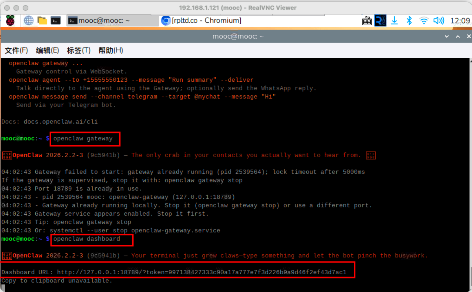 6️⃣⚠️⚠️⚠️:先输入openclaw gateway启动网关,然后ssh先连接上树莓派