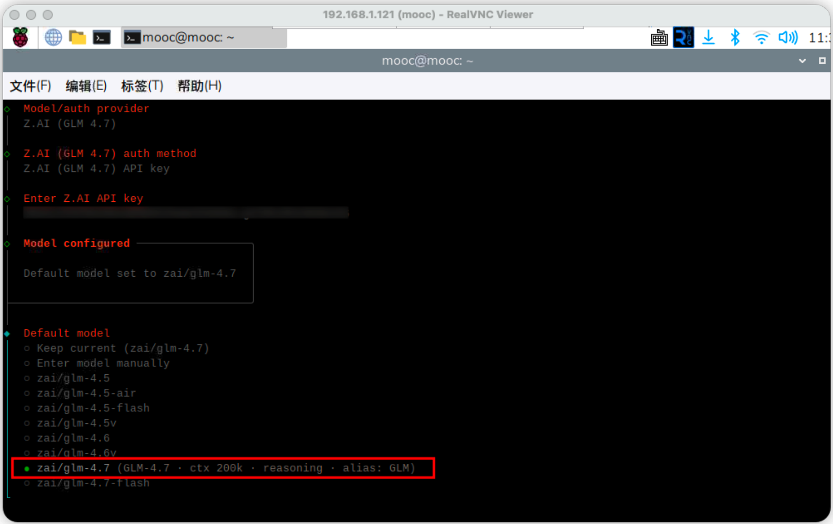 3️⃣相应的配置操作,选择模型为zai/glm-4.7的模型,输入API Key。