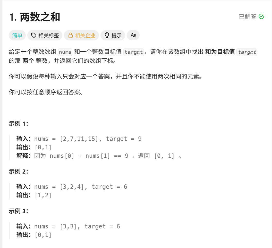 你可以假设每种输入只会对应一个答案,并且你不能使用两次相同的元素。