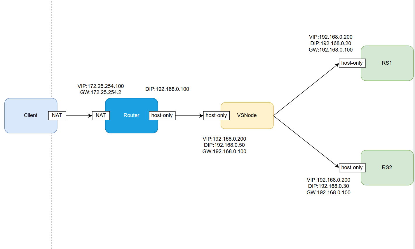 RIP和DIP应在同一个IP网络,且应使用私网地址;RS的网关要指向DIP。