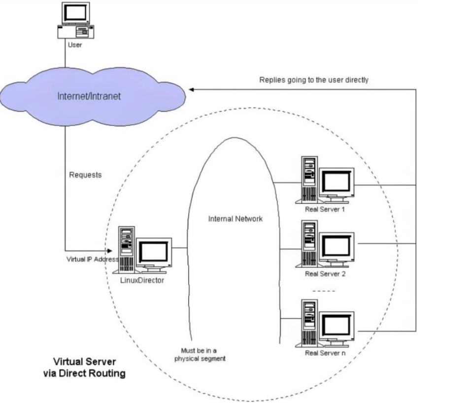 DIP: Director IP VS内网的IP (调度器负责访问内网的ip)