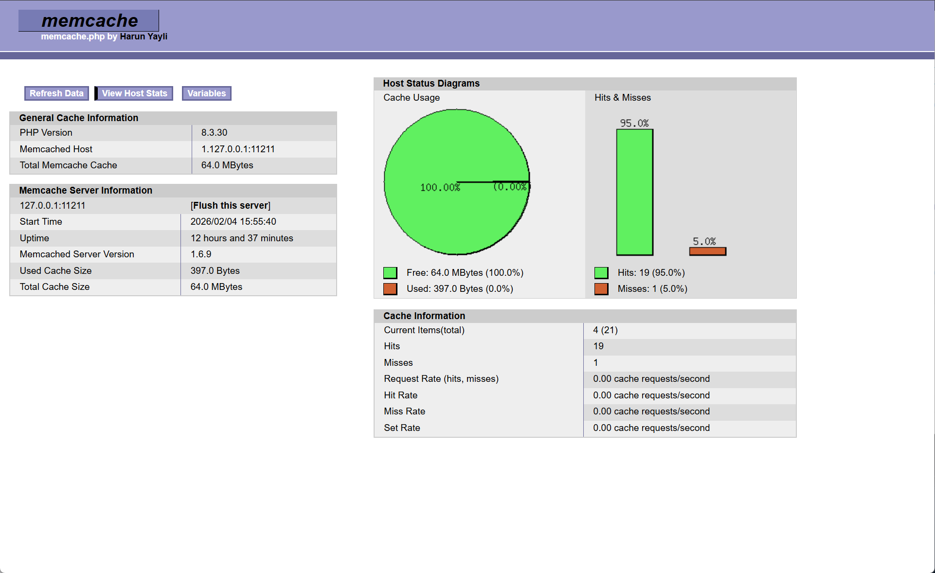 #重启memcache并访问没有缓存的php文件查看缓存命中