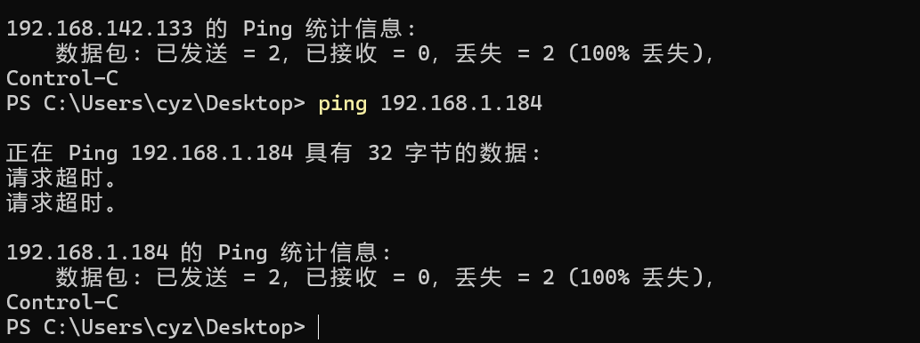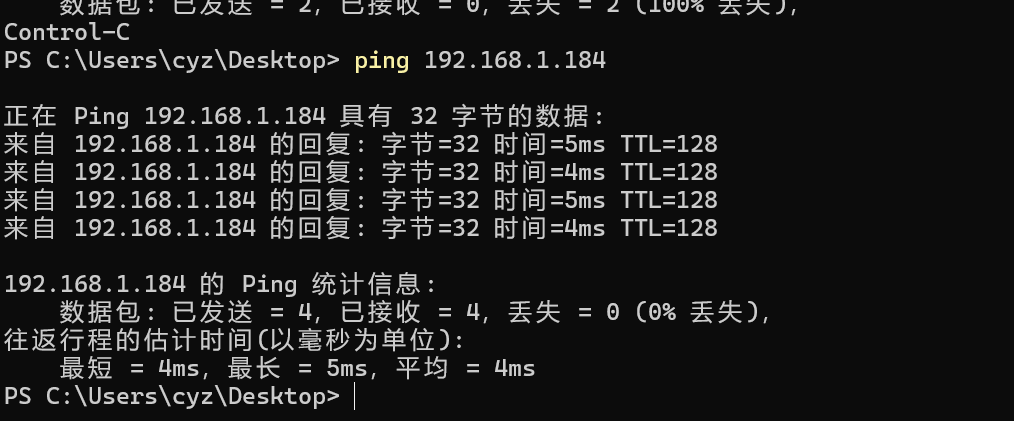 修改后再次ping