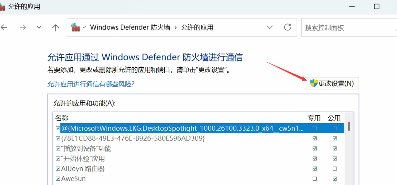 - 打开 控制面板 > Windows Defender 防火墙 > 允许应用通过防火墙