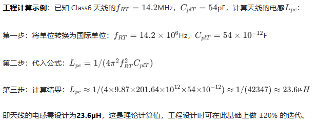 简化模型 :工程设计中,为了简化计算,通常将 CCon 取中间值 1pF,Cc 取工程推荐值(2~4pF),因此 CplT≈50+1+3=54pF(基准值),这是 Class6 圆形天线电感计算的核心基准。