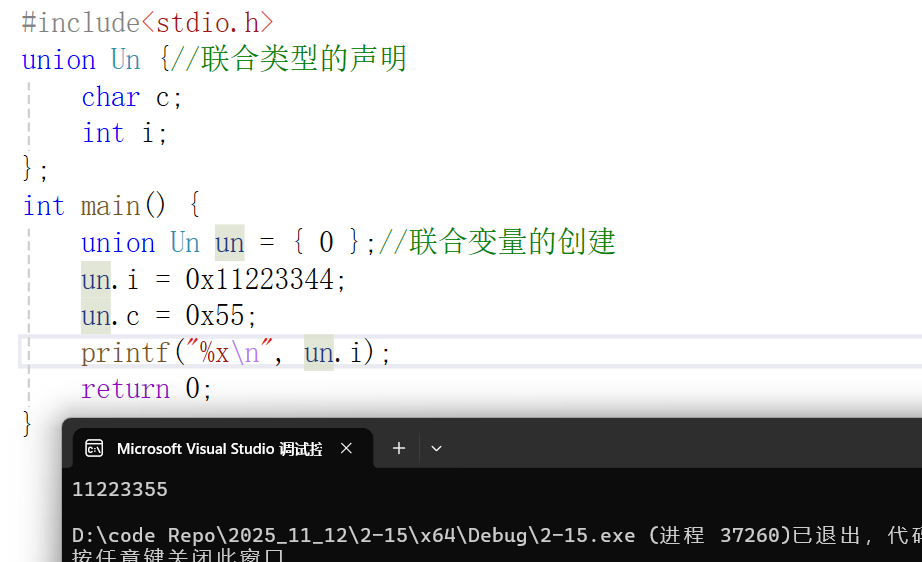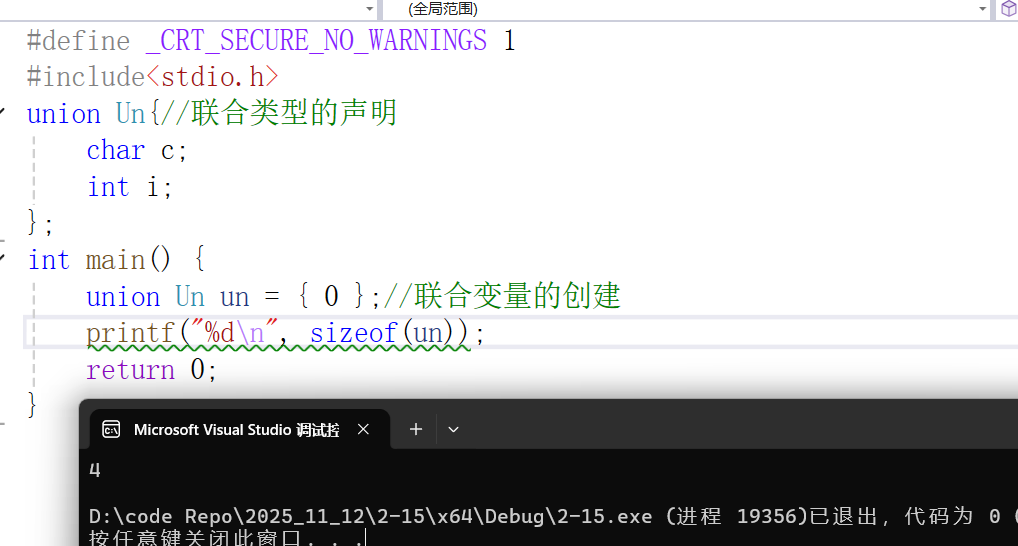 union Un un = { 0 };//联合变量的创建